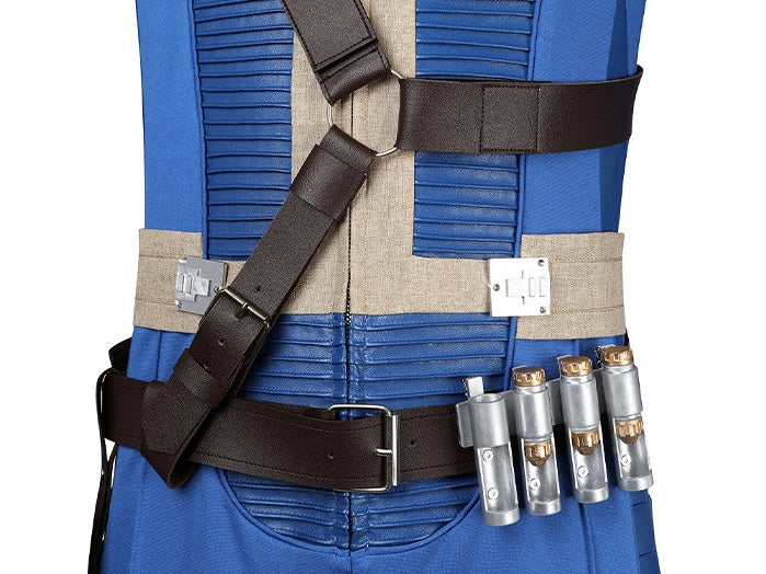Ce set comprend 1. une combinaison, 2. un débardeur, 3. une ceinture, 4. des bretelles, 5. des protège-bras, 6. des accessoires de ceinture, 7. des accessoires pour la combinaison, 8. des protège-mains, 9. des brassards, 10. des protège-genoux et 11. des protège-jambes.