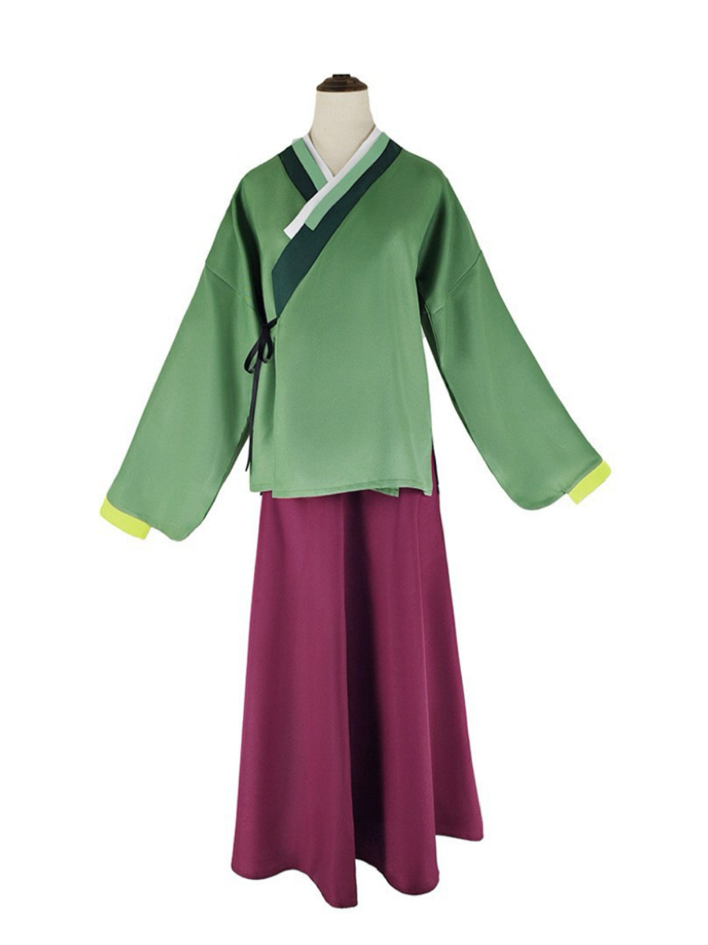 Plongez dans l’univers délicat de The Apothecary Diaries avec cette tenue complète inspirée de Maomao. Confectionnée dans un tissu souple et agréable, cette tenue met en valeur l’esthétique japonaise avec une touche de simplicité et de fraîcheur. Idéale pour le cosplay, les conventions et les séances photo.