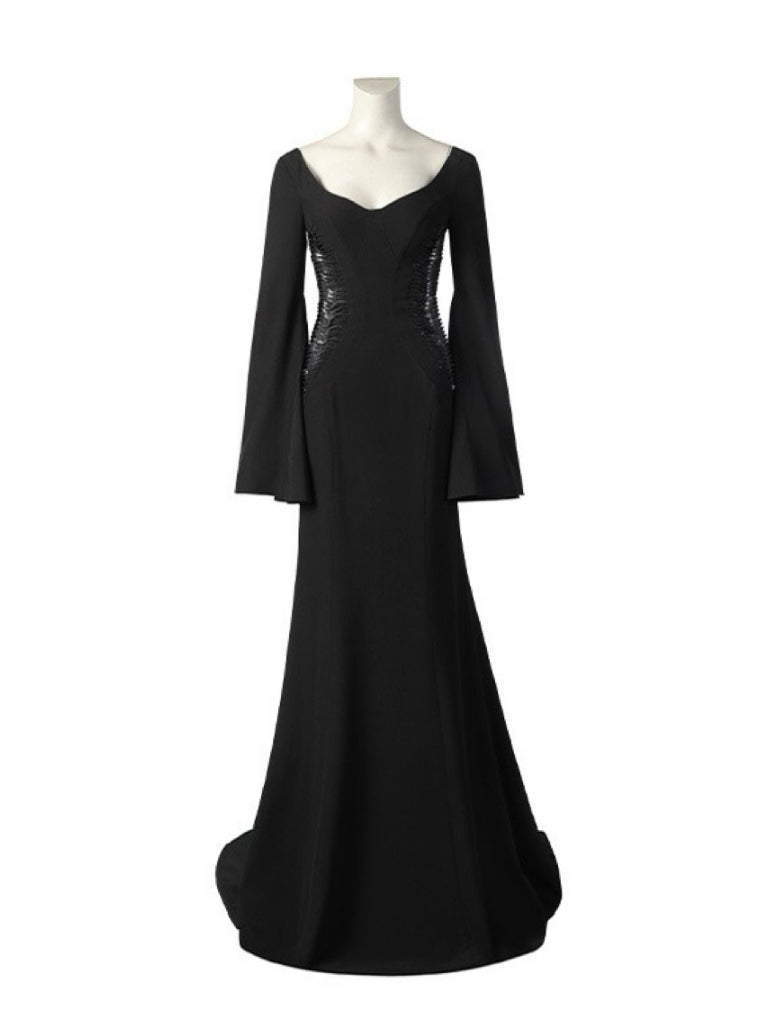 Entrez dans l’univers iconique de la famille Addams avec cette robe Morticia inspirée de la série Wednesday. Cette tenue capture l’élégance sombre et le charme mystérieux de Morticia, tout en offrant un confort optimal pour vos événements cosplay.